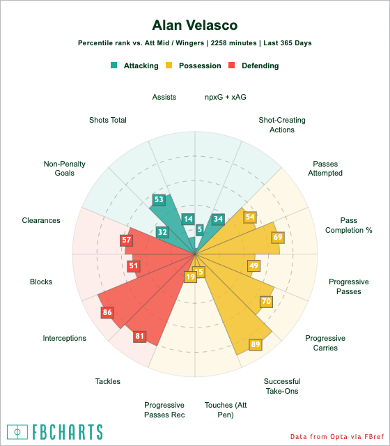 Injuries were a bit of an issue for Velasco in 2023, but he actually appeared and started more games in his second season than he did in his first. Aside from injuries, form was a bit of an issue at times, as he scored four and assisted on four in 2023, down from his six goals and seven assists in 2022.