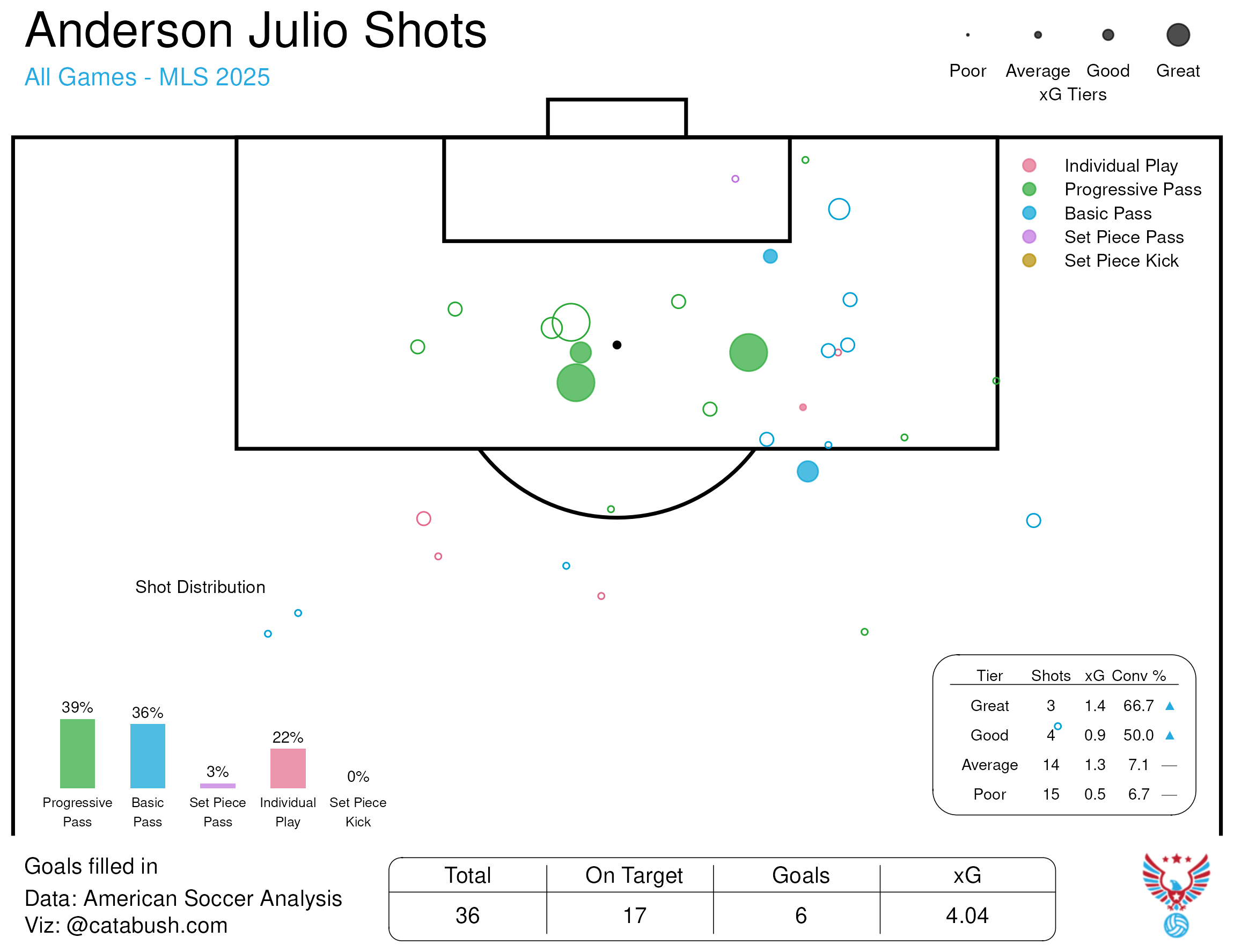 For me, the thing that stands out about his 2025 performance is that he’s not a 90 minute player. His speed and bursts of energy typically means he crashes out around the 65th minute. It took FC Dallas manager Eric Quill a while to figure that out this season.
