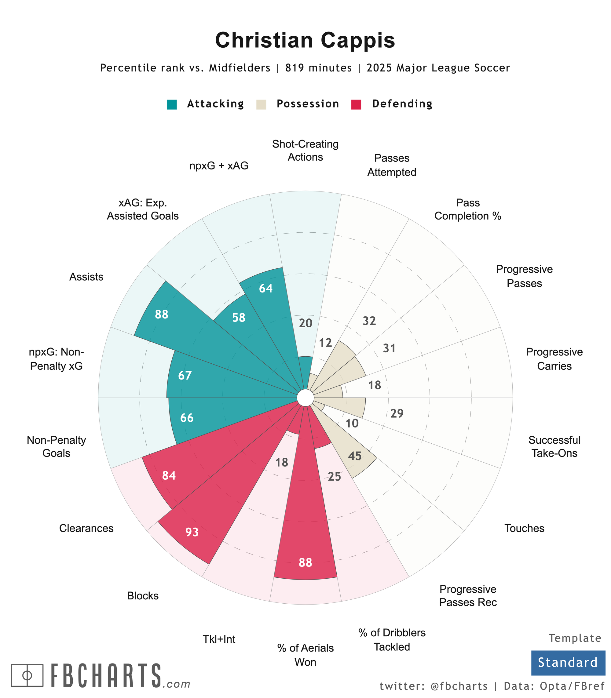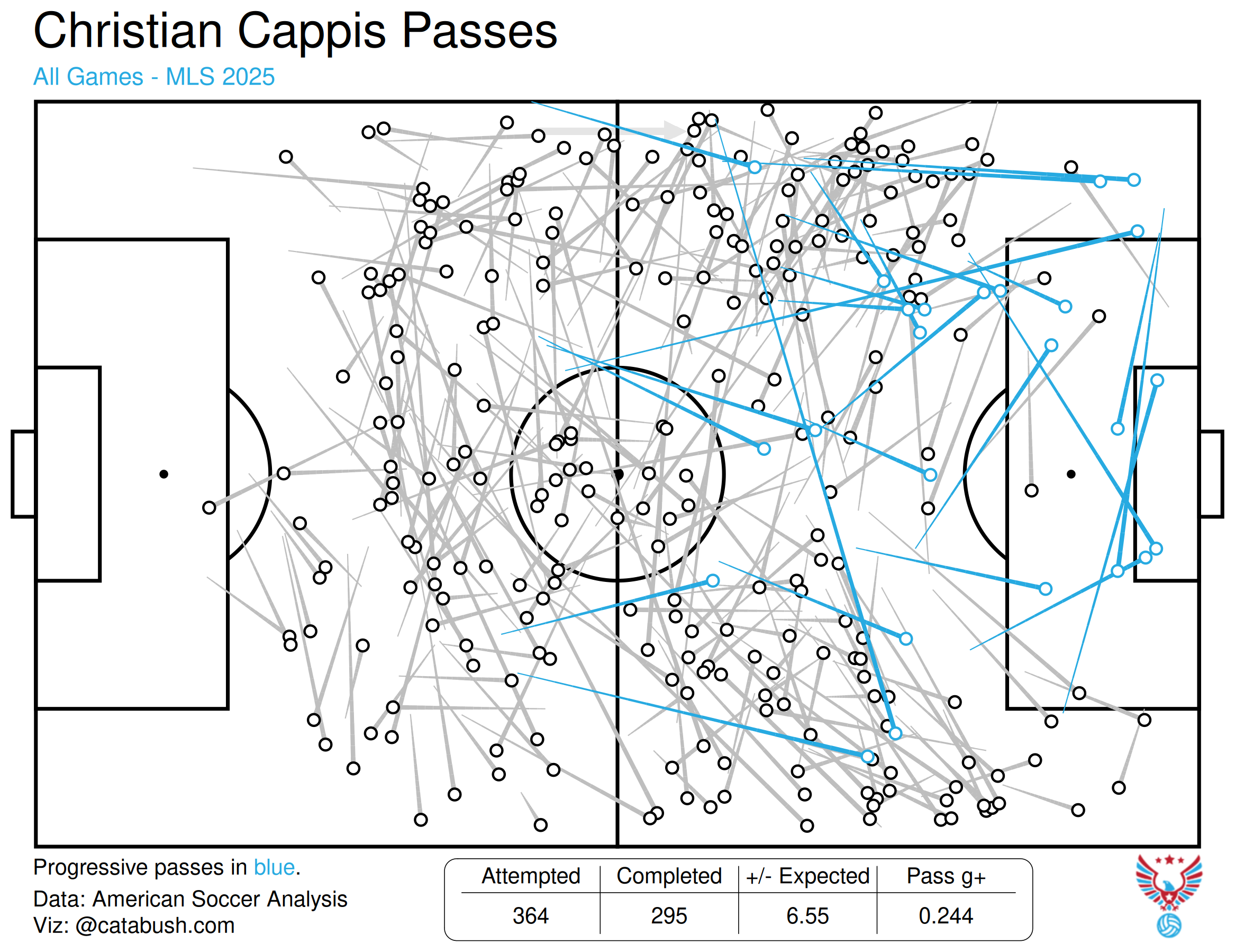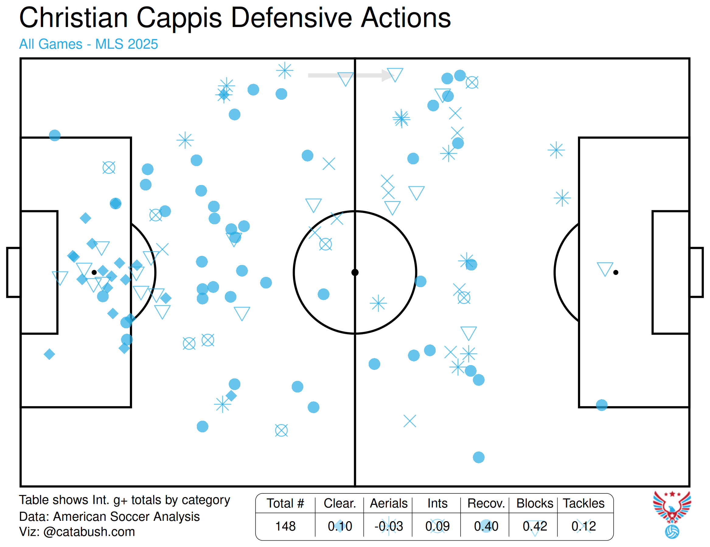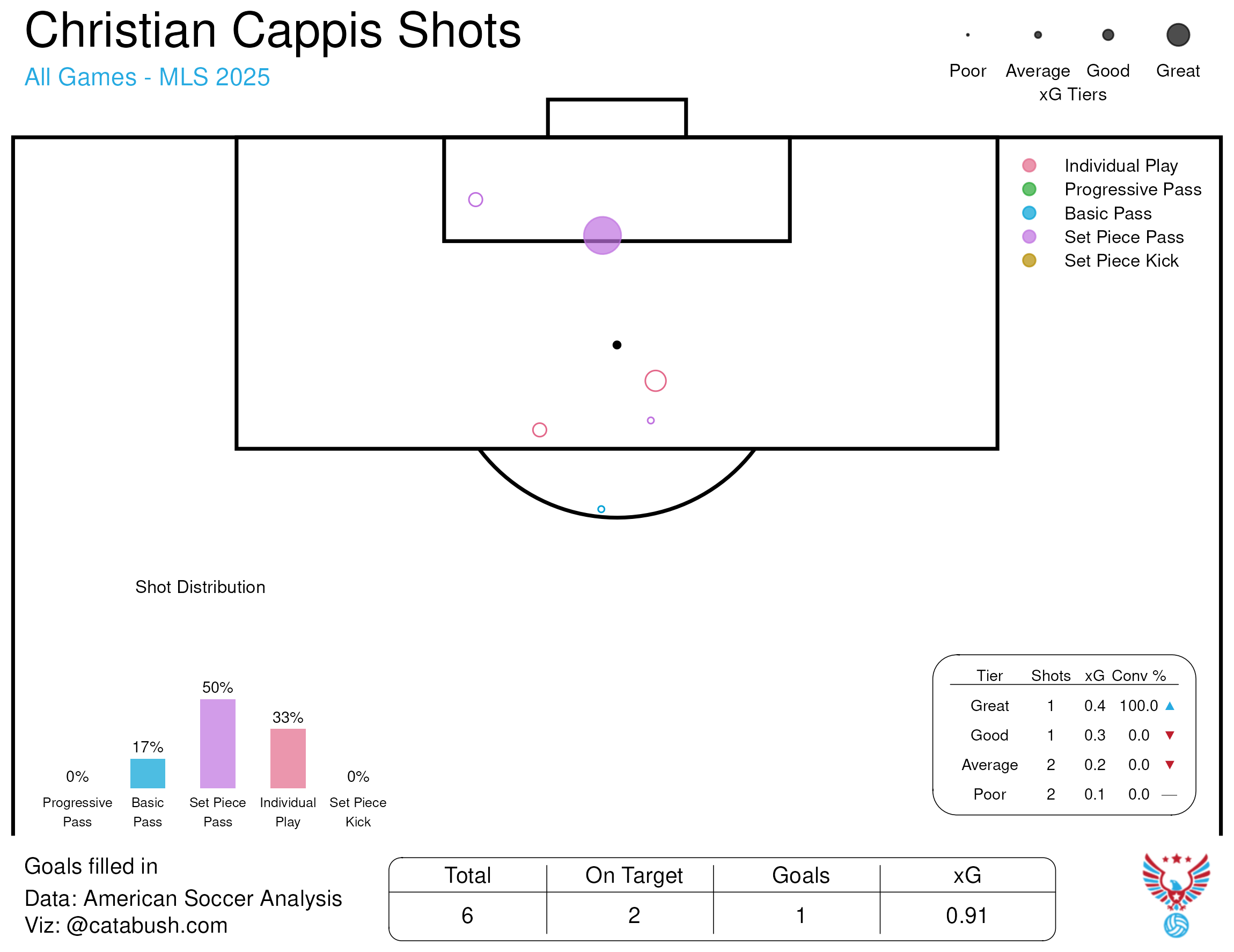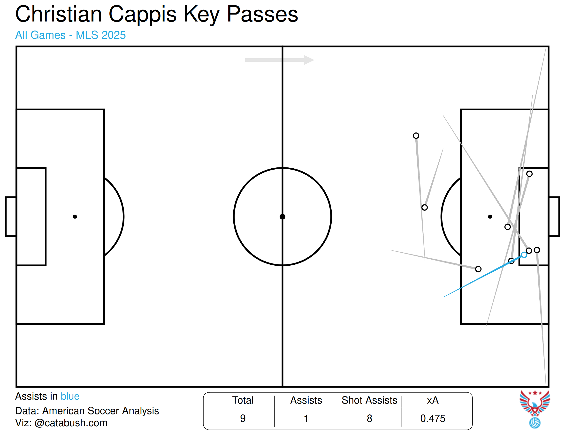Cappis had one goal, a nice tap in on a corner kick late in the season against the Colorado Rapids.