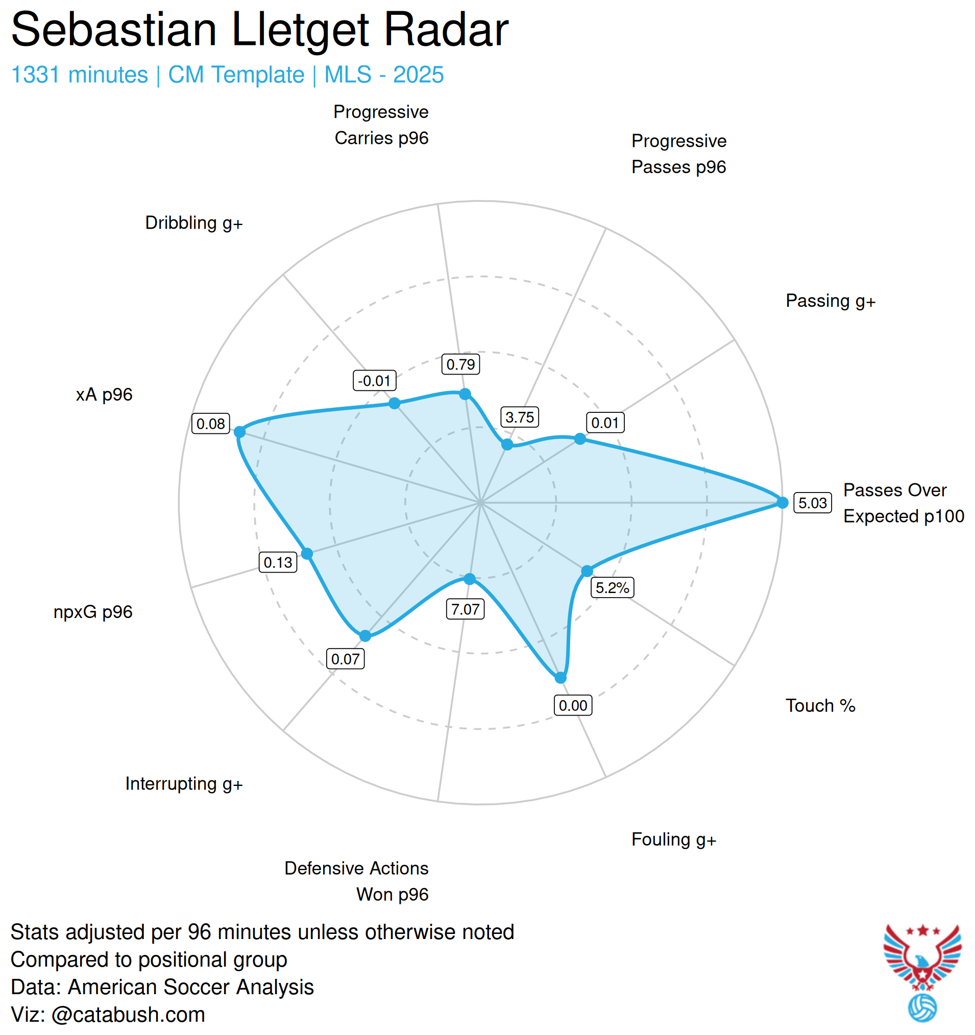 | Sebastian Lletget | 20 | 14 | 1150 | 1 | 3 | 4 |