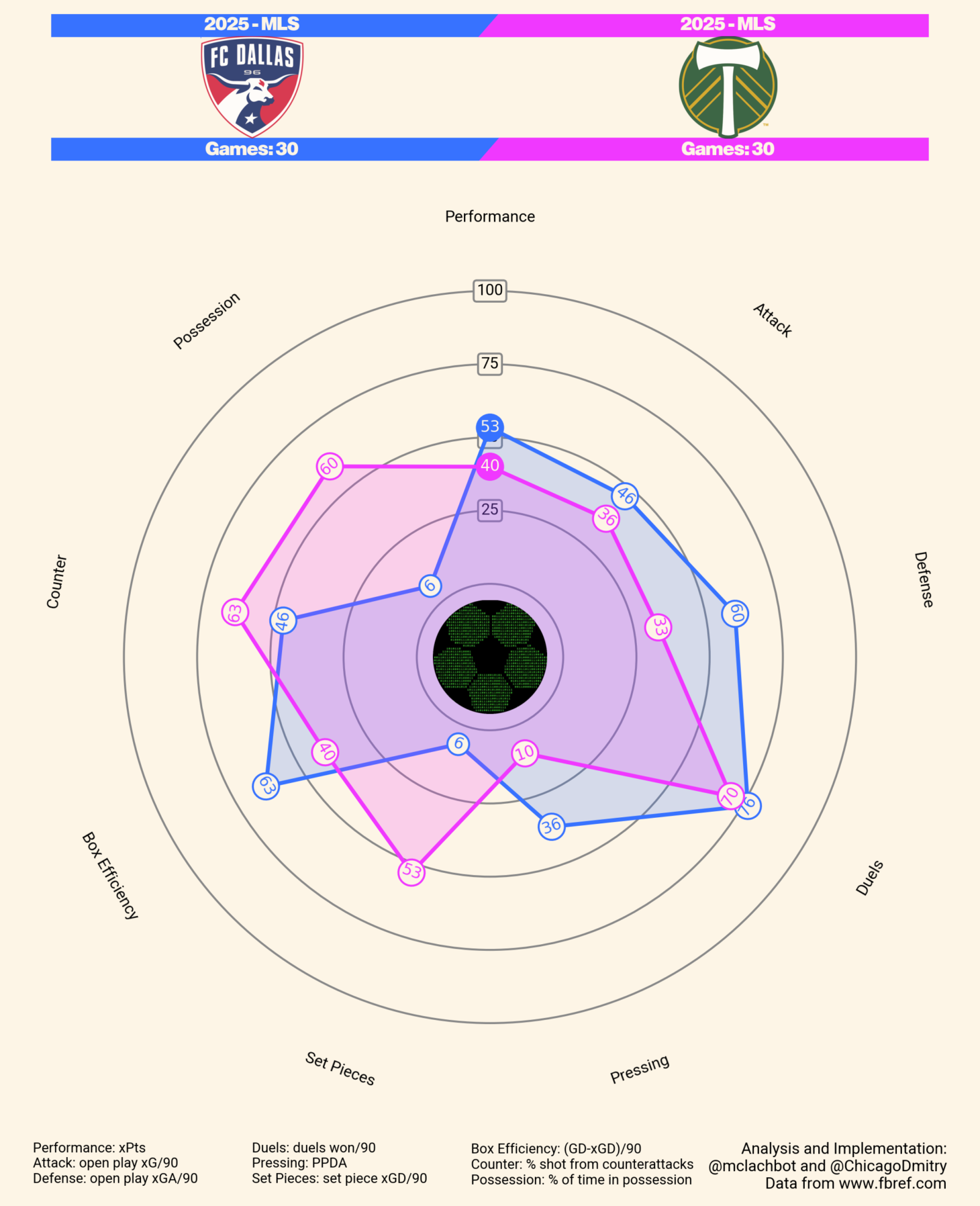 Comparing the two clubs: At this stage in the season, both teams have rounded into form pretty nicely. Portland will likely dominate the possession battle in this game (similar to what we saw a few weeks ago in Frisco), but Dallas does hold the edge in a few defensive areas right now.