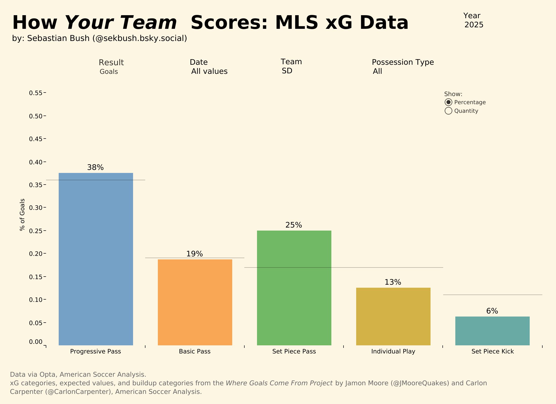 How San Diego scores their goals: Due to that wealth spread, San Diego has gotten goals from all sorts of plays this season, with progressive passes being their most common.