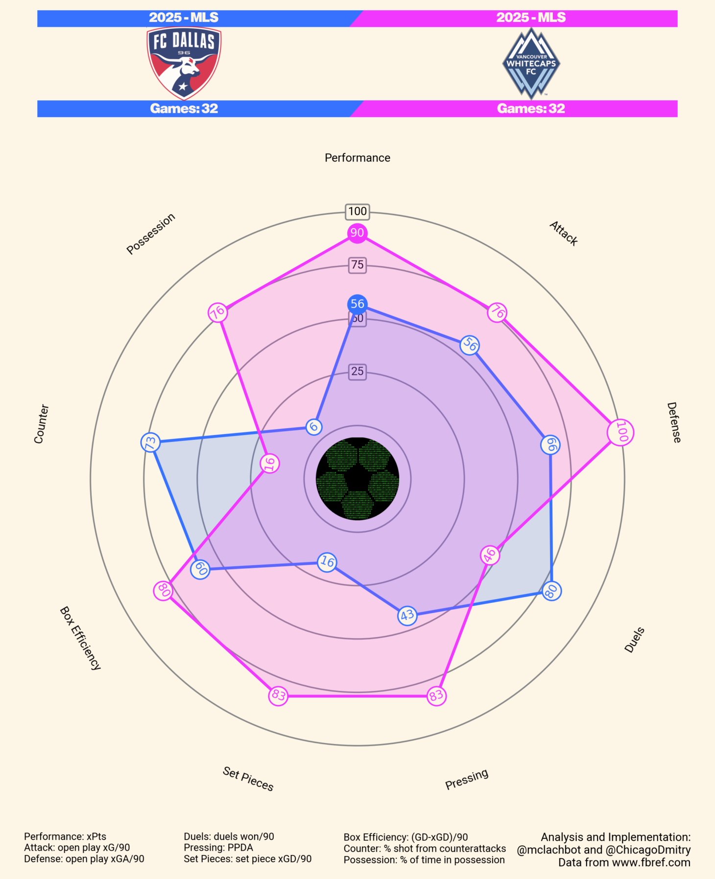 Comparing the two clubs: It really shouldn't be a shock to see how the Whitecaps are so much better in attacking and defending areas this season than FC Dallas. This game could really come down to whether or not FC Dallas can catch a break on a counter attack.
