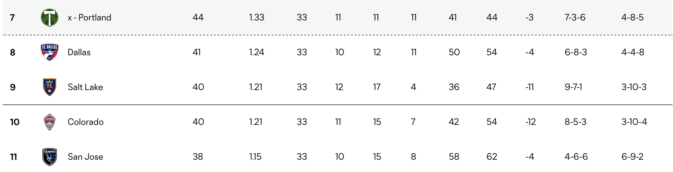Should FC Dallas win their game on Saturday and the Portland Timbers lose against San Diego FC, Dallas will jump into 7th place above the Timbers, thus avoiding the Wild Card round.