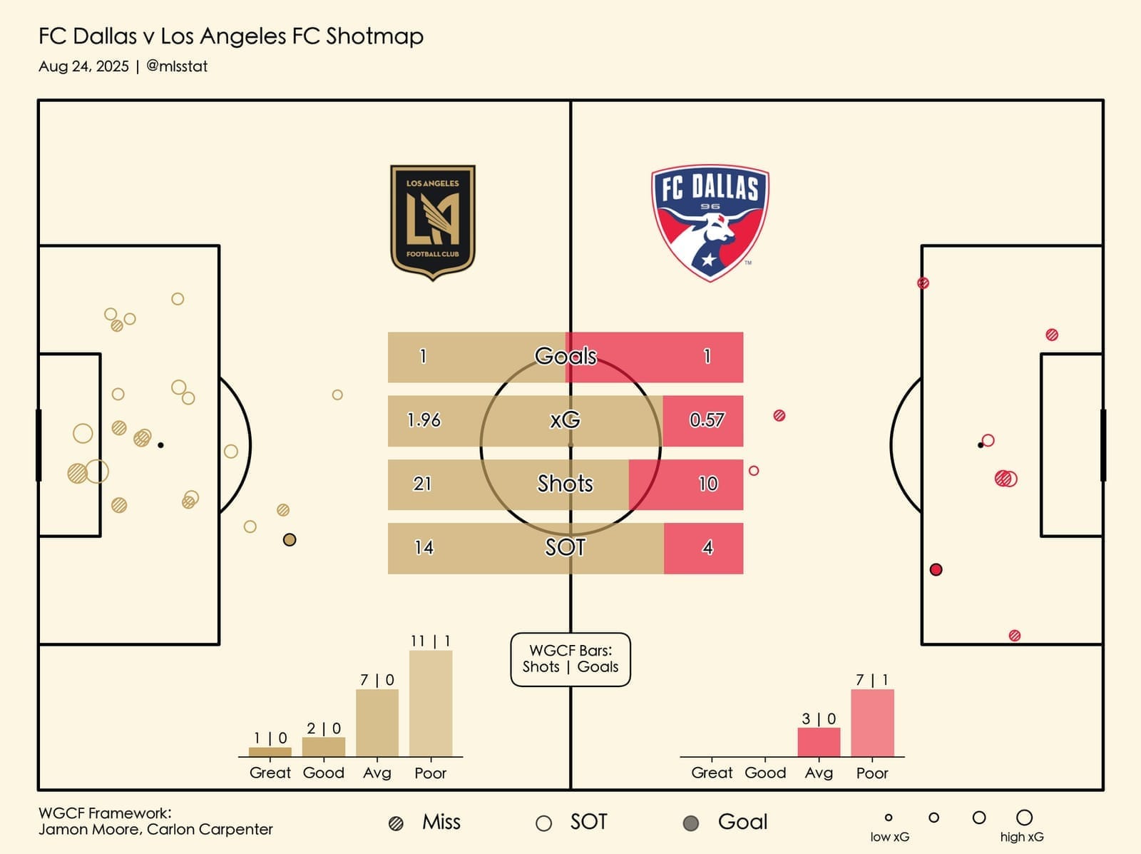 Against LAFC, for the most part, that game plan worked well. As you can see from the shot map, LAFC only had a couple of good or great looks on goal.