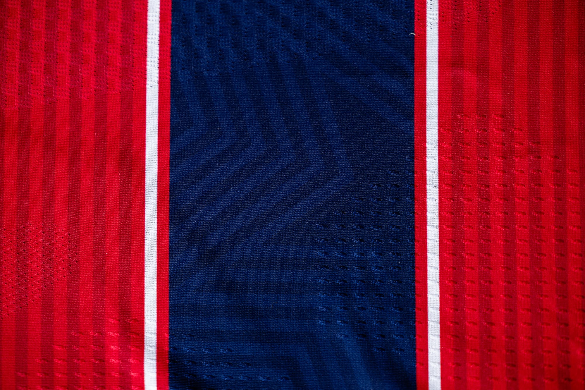 In 2016, the club also secured its first Supporters’ Shield. All three major trophies share one defining feature: hoops. FC Dallas wears hoops. Since rebranding to FC Dallas in 2005, 18 of the club’s jerseys have featured hoop elements. The DNA kit continues that legacy with several hoop patterns, including slim white piping, red-on-red mini hoops, and three bold horizontal blue hoops across the front. The kit returns to a red base on both the front and back, with names and numbers in white on the jersey and shorts.