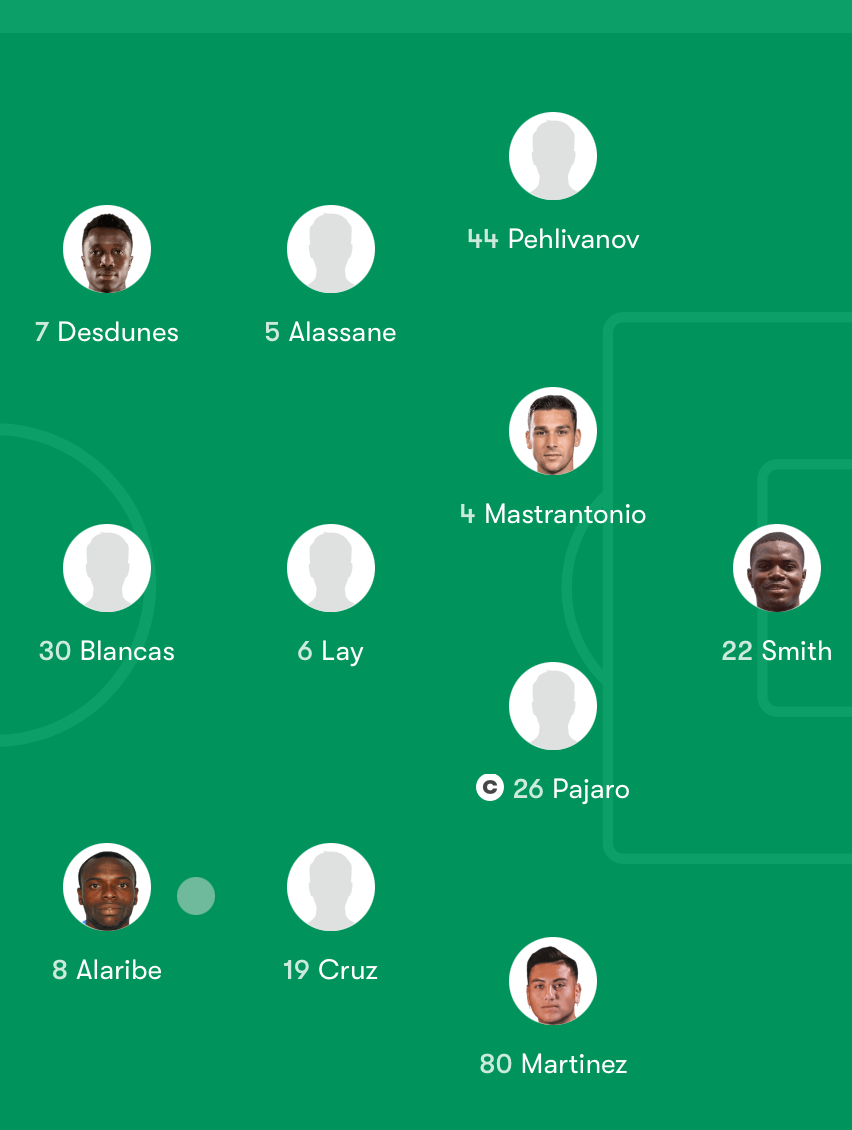 There are a few changes though from last week's group that got blown out in San Diego. Logan Farrington starts up top in a 4-3-3 with Bernard Kamungo, with Lucho Acosta in support.