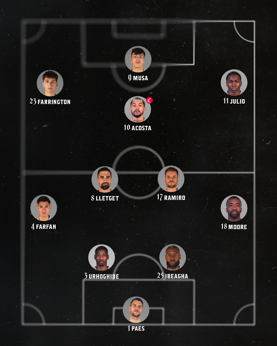 Farrington will be in the attack opposite of Anderson Julio on the wing, with Lucho Acosta sitting underneath Petar Musa.
