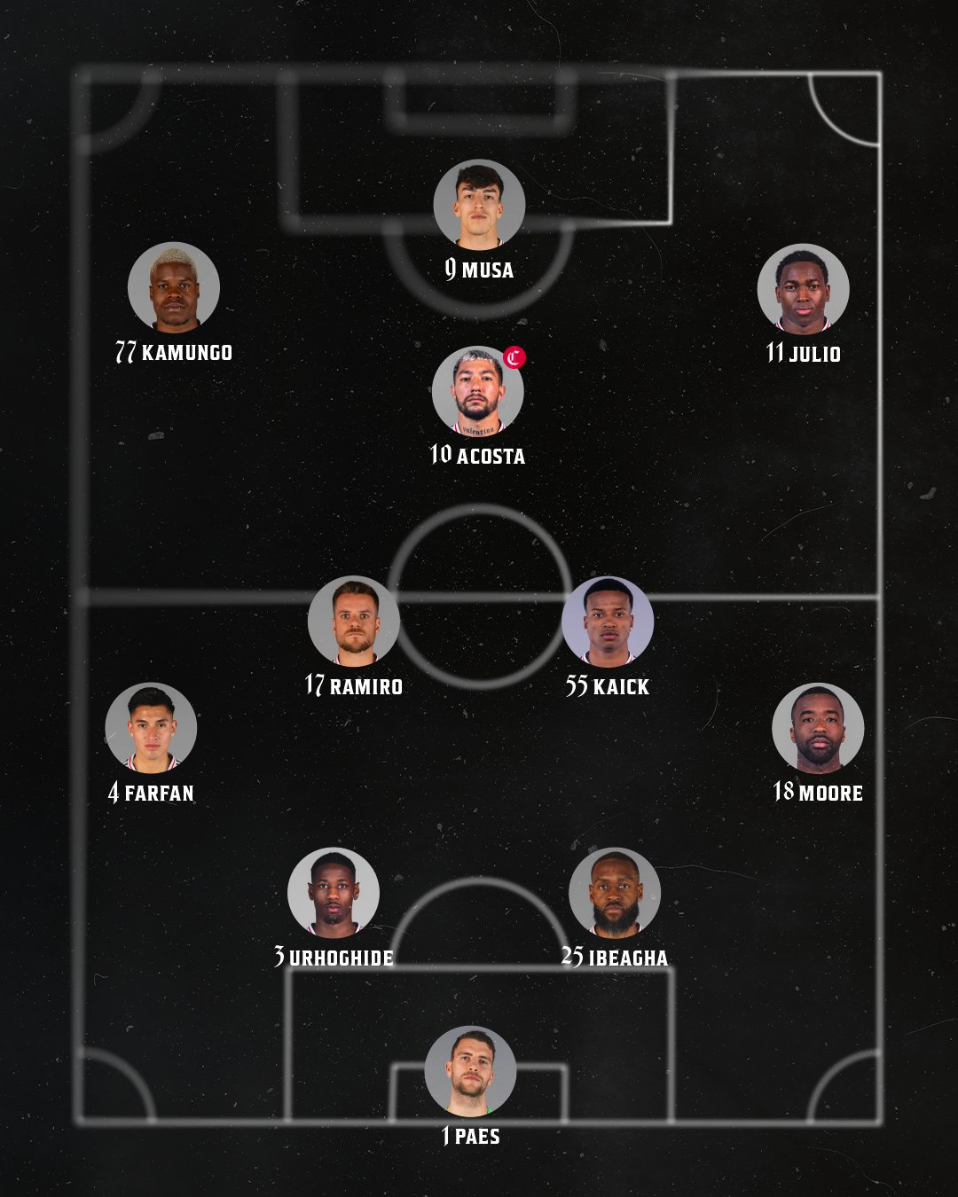 This may be the strongest lineup FC Dallas has fielded in a couple of months. Along with Acosta in the attack are Petar Musa, Bernard Kamungo and Anderson Julio.