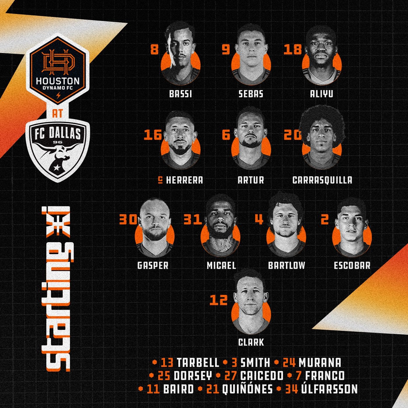 Nico Estevez is having to deal with injuries again tonight as they host the Dynamo, here is a look at what he is working with: