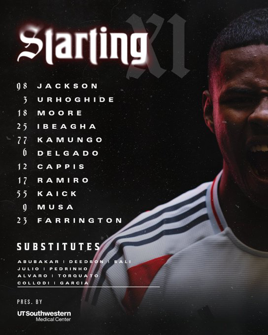The bench is pretty interesting tonight, no Maarten Paes or Paxton Pomykal (they did travel), but we see Michael Collodi, Lalas Abubakar, Deedson, Enes Sali, Anderson Julio, Pedrinho, Alvaro Augusto, Diego Garcia and Josh Torquato.