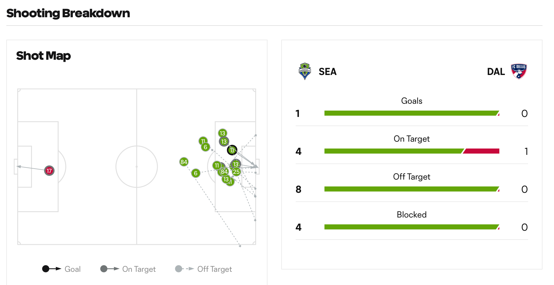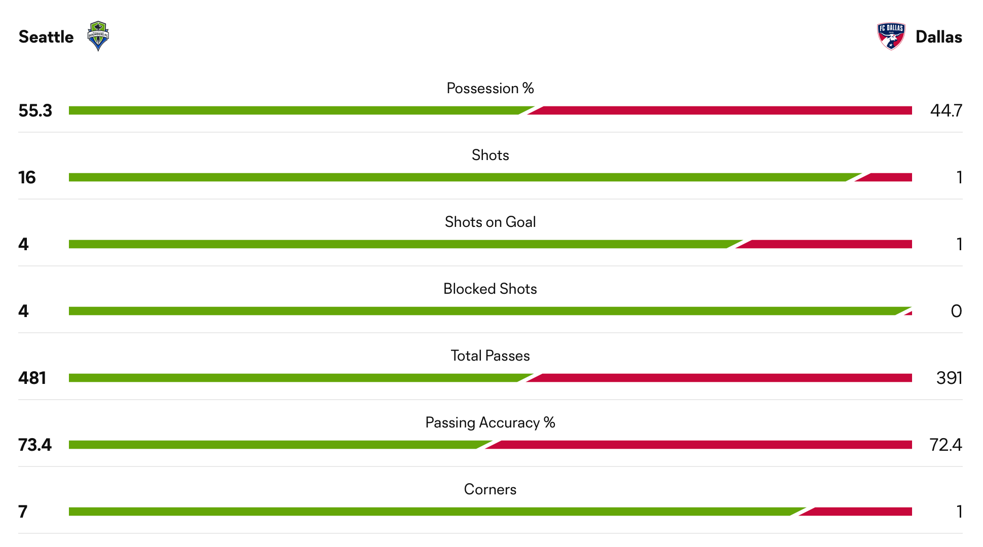 DAL: Paul Arriola (caution) – 85’