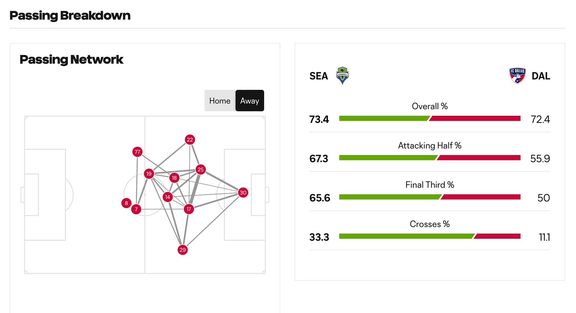Seattle Sounders FC — Stefan Frei; Nouhou Tolo, Jackson Ragen, Yeimar Gómez Andrade, Alex Roldan; Joshua Atencio, João Paulo (Obed Vargas – 87’); Léo Chú (Nicolás Lodeiro — 70’), Albert Rusnák, Cristian Roldan; Jordan Morris.