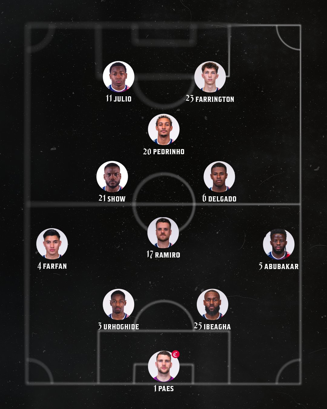 In goal, we'll see Maarten Paes. The defense in front of him will see Sebastien Ibeagha return to the starting lineup after coming off the bench on Wednesday in New York. He'll be lined up next to Osaze Urhoghide in the middle with Marco Farfan returning to the starting lineup for the first time since earlier this season. Opposite of him will be Lalas Abubakar instead of Shaq Moore on the right wing.