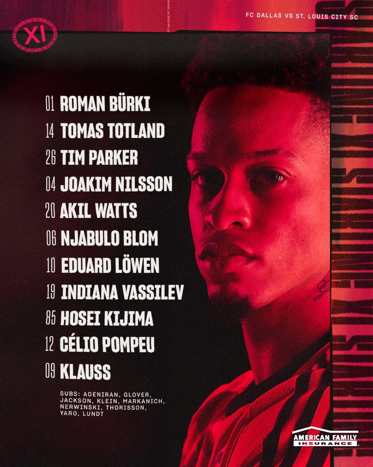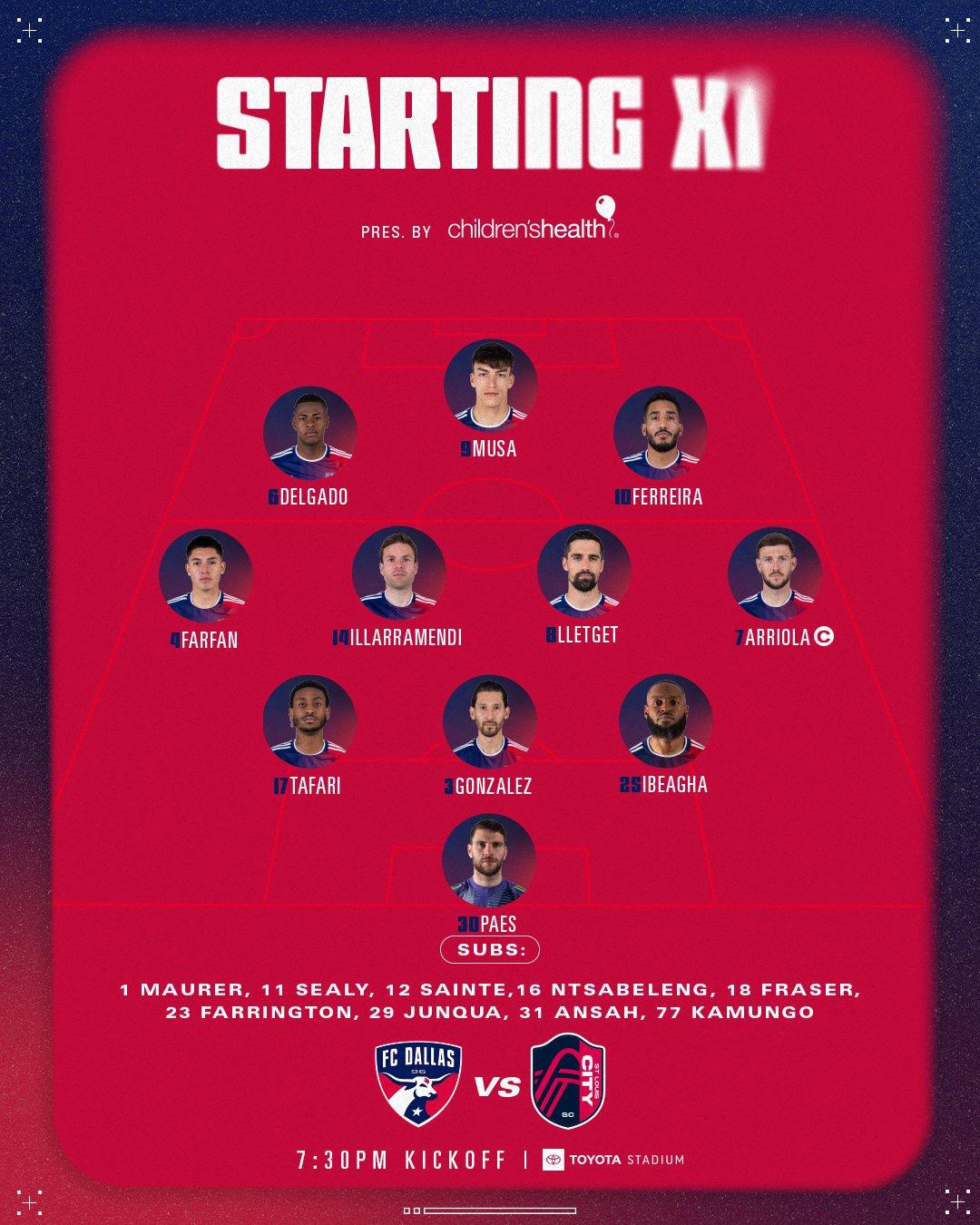 The front three is really the only group that goes unchanged from the draw in Minnesota last week with Jesus Ferreira and Patrickson Delgado under Petar Musa.