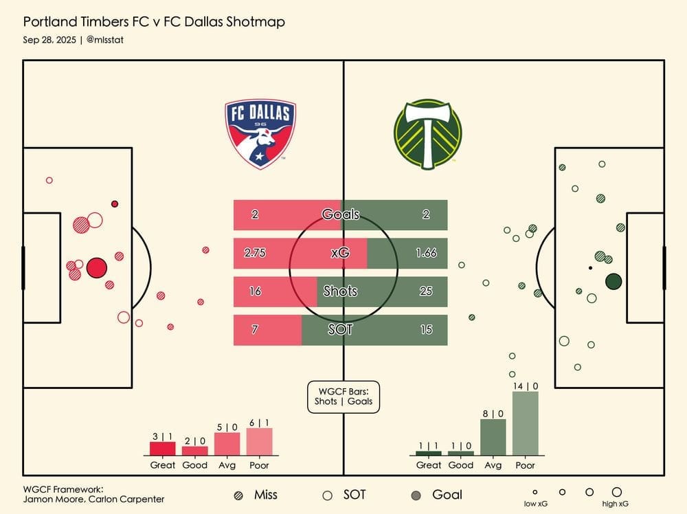 There were plenty of attempts on goal in this one from FC Dallas. It has been a while since we've seen them put up seven shots on target on the road this year, with many of them hitting the post, or forcing a big save.